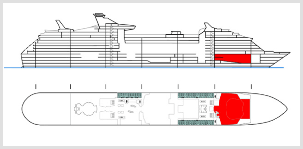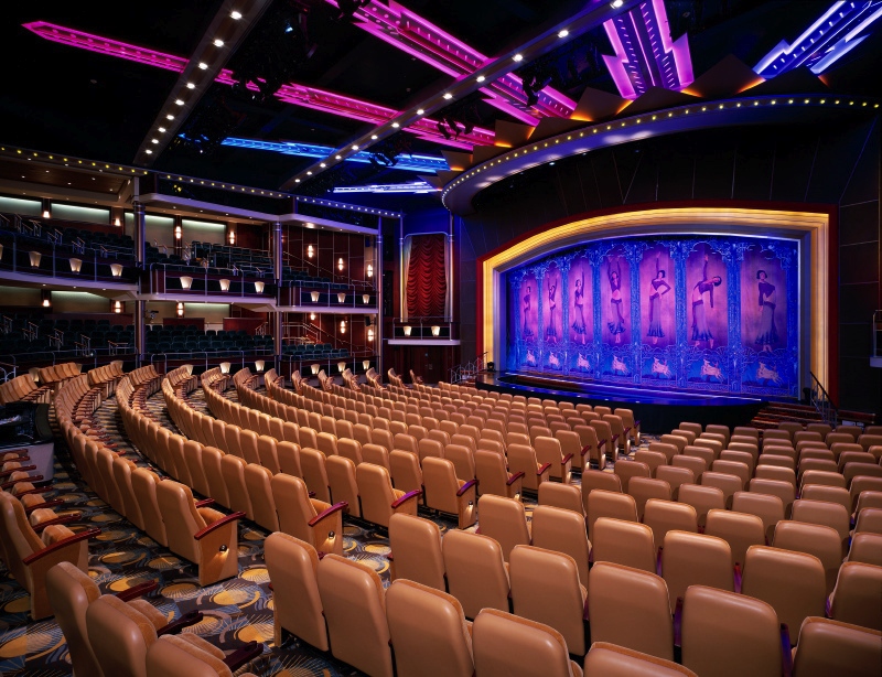 - These theaters feature a hydraulic, self-leveling orchestra pit and range over the entire breadth of the ships.
